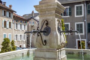 – les nombreuses fontaines, dont celle, place des Halles, des Quatre Goulettes restaurée en 1746 par Jean-Louis Bovet, architecte genevois ou celle du Bourg-d’en-haut ou des Ursulines qui existe depuis 1629, ou encore celle des Carmes appelée de la Petite Goulette dont l’eau d’excellente qualité attirait les Gessiens,