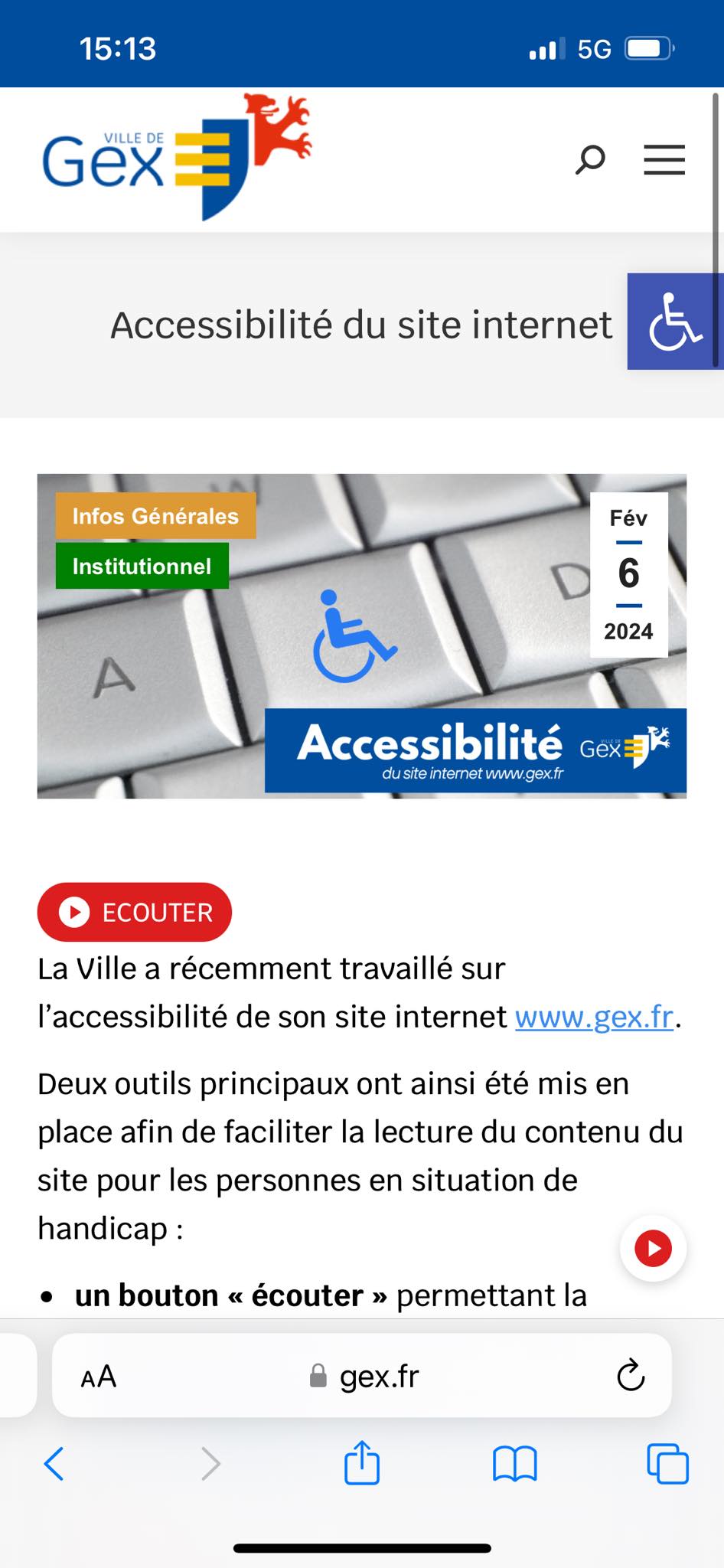 En ce sens, en 2024, la Ville a élaboré un plan d’actions afin de rendre son site internet officiel www.gex.fr accessible.